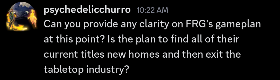 FRG has made it clear they want out of the board game space so Christopher trying to line something up at Gencon is plausible. Whatever the news I hope it leads to stability for GtG again.
