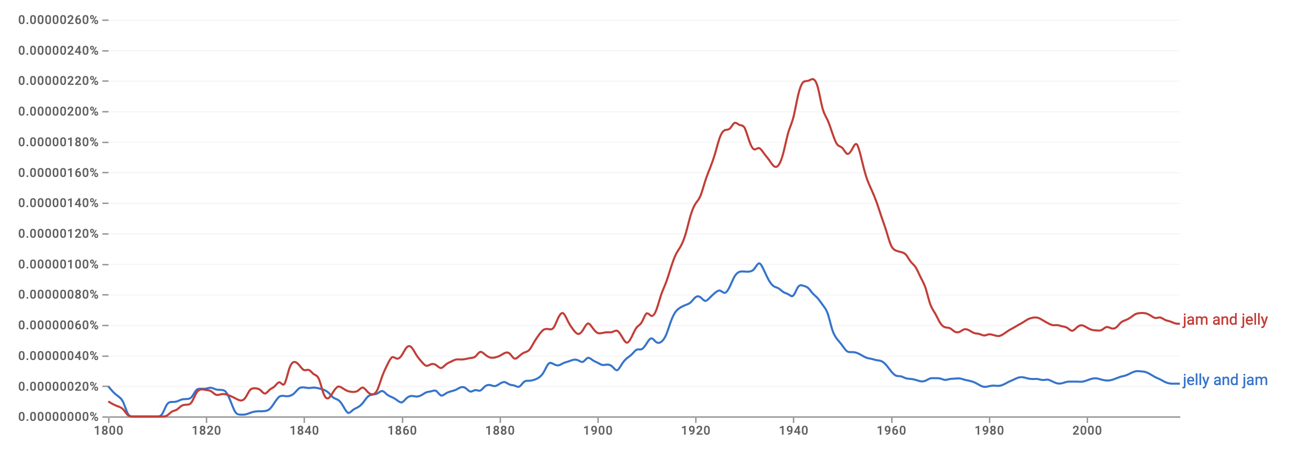 The Google Ngrams showed that âjam and jellyâ was more common: