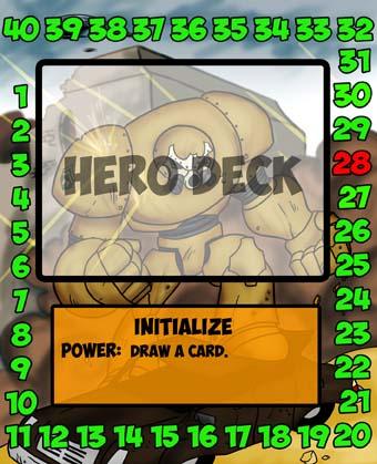 I’m digging it. I took EvilWayne’s awesome trackers and added info like the hero’s hp total, their on-card power, and on the back, their three incapacitated powers. Now, you can use these on the table in front of you instead of needing the hero’s actual card. Thanks EvilWayne!